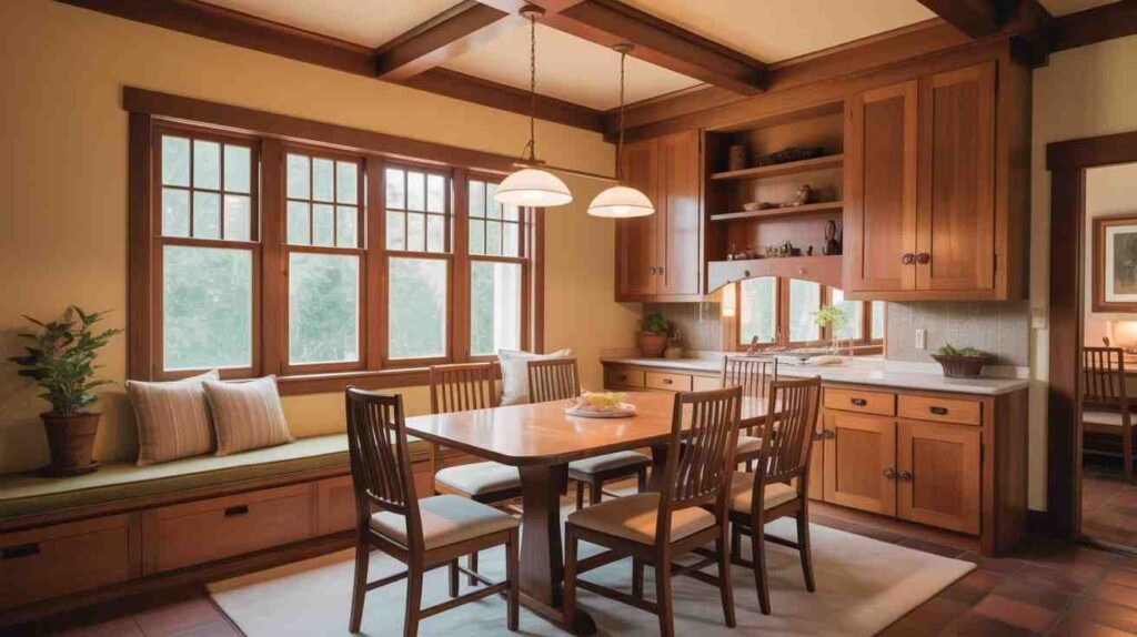 Built-ins define Craftsman decor interior design. Custom cabinets hug walls perfectly. Window seats offer cozy nooks for reading. Bookcases blend into architecture.